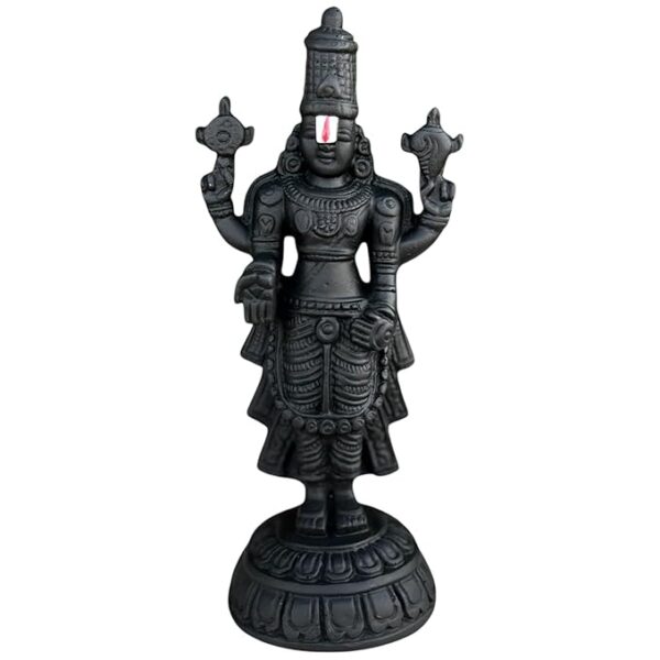 Traditional Hindu Temple Statue featuring Tirupati Balaji in a striking black stone finish.